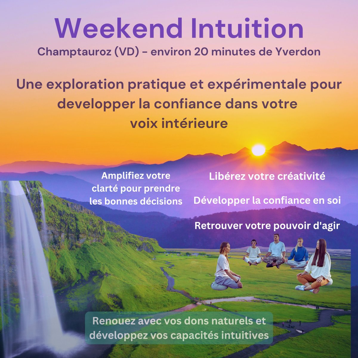 «Intuition et éveil de la conscience : pratique et expérimentation. » s'appuie sur l'approche de « Oneness » - l'union avec le Tout - et sur l'intention de renouer avec son guidance intérieure.